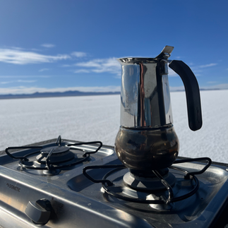 On a bien dormi, on a quand même dû remettre les pendules à l'heure et on s'active : on se prépare pour aller dormir dans le salar !