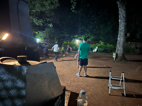 Olivier nous précise qu'il ne pourra pas nous prendre puisqu'ils sont trop chargés. Nous voyons avec le taxi argentin s'il peut nous amener à la maison côté Brésil ! Il accepte !!